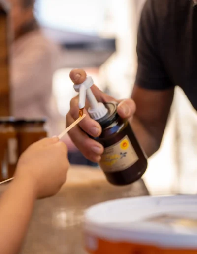 Nous vous proposons un menu complet, composé de plats cuisinés au miel local, préparés avec soin par nos bénévoles. Pensez à réserver un peu plus bas sur notre page.